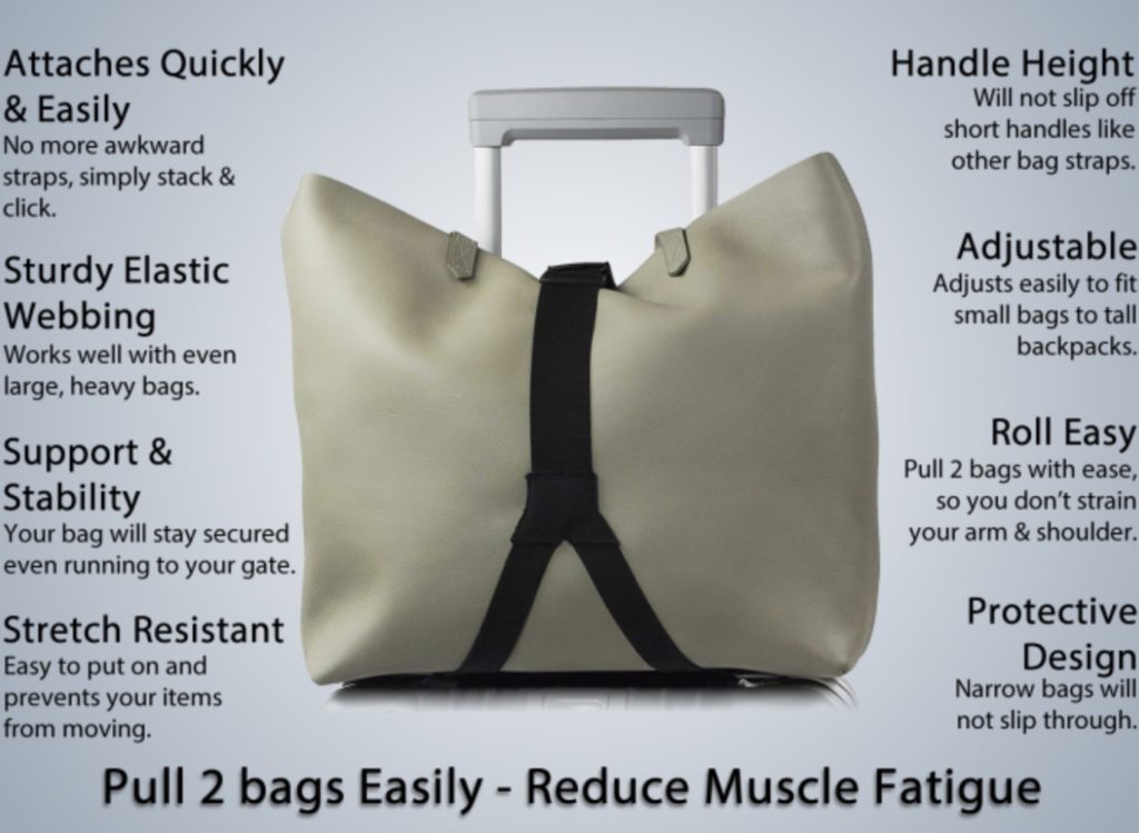 I just signed up for this and look forward to getting one. I have a strap gadget that attaches to my rolling bag handle and goes around the top bag but it has to stay with the rolling bag and makes it difficult getting that into the upper bin. Used it twice, now it collects dust. But it was not a problem lowering the handle. I also have a bag that slips over the handle – that one is quite difficult to get off the handle and I do hold up traffic in the aisle. So now I just balance the underseat bag on my rolling bag and hope for the best.