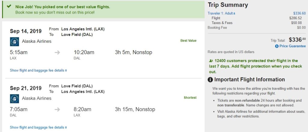 - Follow link for sample dates or search your favorite OTA / Google Flights for departure and destination