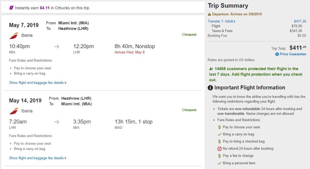 - Miami from $401; 1-way nonstop from $411 (American / Iberia)