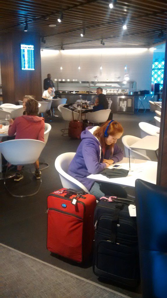There was a reception desk where I was able to check-in. Normally, the American Express Centurion Lounge Las Vegas is available for holders of the American Express Platinum or Centurion cards (these are the ones with the ~$450 annual fees), and if you have one of these cards, your immediate family also gets in for free. If you don’t have one of those cards, but do have a DIFFERENT American Express, you can pay $50 for a day pass, which lets in any children under 18 that are traveling with you. Aha! Clearly they hadn’t thought about those of us with 6 kids!!!! $50 is a steep price (for me anyways), but if we had a few hours to kill, it would probably be cheaper than 8 airport meals. Though as I read the rules, both adults would have to pay the $50.