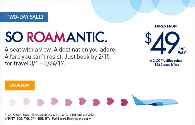 jetBlue is at is again, with flights for sale as low as $34. Where will you go for cheap? Act fast, as the sale ends tonight! You can see the current deals available by clicking here.