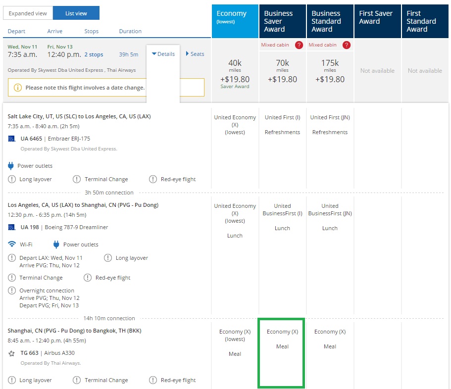 I was looking into some business class awards to Asia using United miles the other day, and noticed what I thought was an anomaly. Sometimes the awards would show up as being 70,000 miles, while for the exact same route, a different flight or date might be listed as 80,000 miles. Here’s an example of a flight from Salt Lake City to Bangkok, Thailand