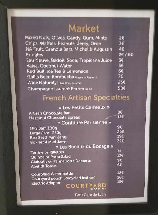 The Courtyard by Marriott Paris Gare de Lyon breakfast is offered in their onsite restaurant “Kitchen & Bar”, and is not generally included in most reservations. The restaurant has a fairly large seating area on the main floor.