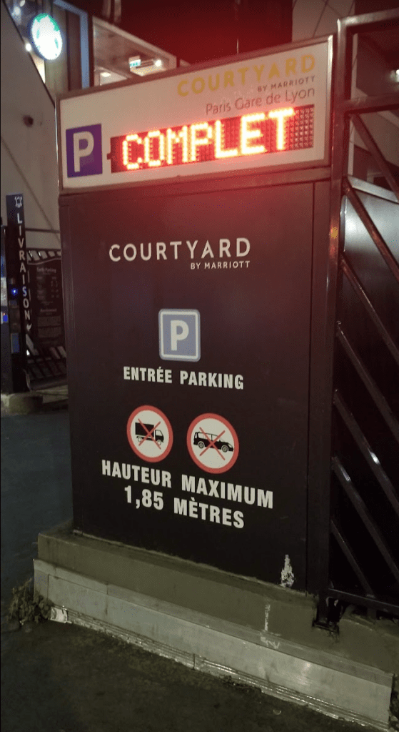 The Courtyard by Marriott Paris Gare de Lyon parking is next to the hotel and is €29 per day, though when I was there, the car park was full.