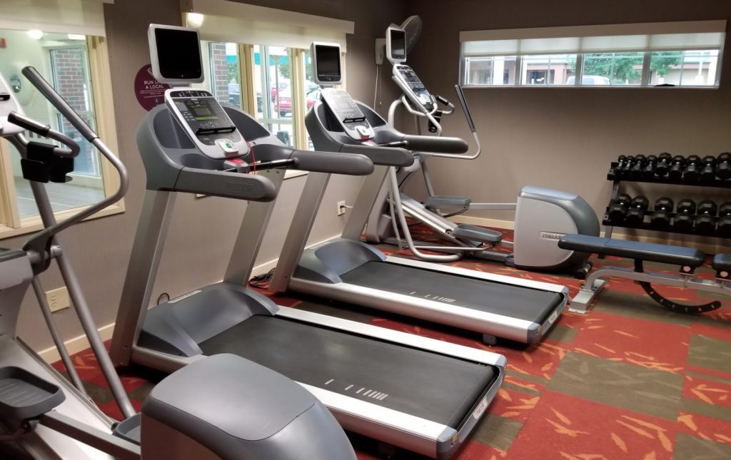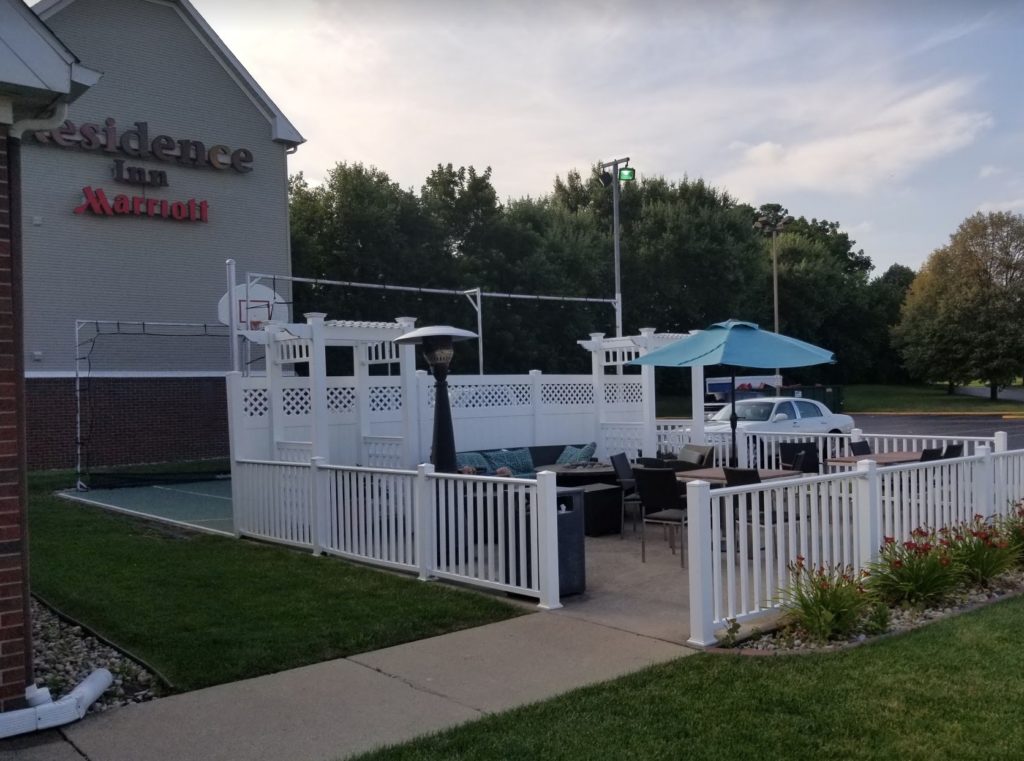 The Residence Inn Peoria Illinois has the typical hotel amenities, but also offers some of the amenities of an extended stay hotel. There is plentiful outdoor seating (which they use for the dinners on Mon-Wed) and a basketball / sport court