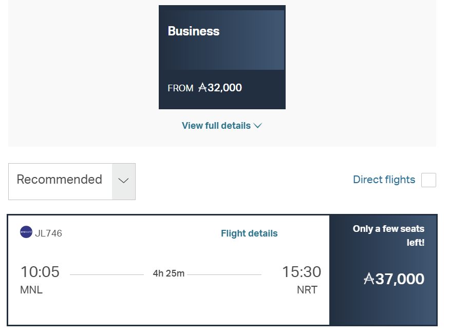 This time, I found a oneworld partner flight from Manila to Tokyo on Japan Airlines.