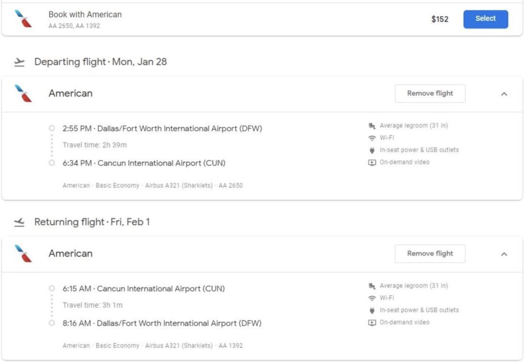 - Follow link for sample dates or search Google Flights optional for departure and destination