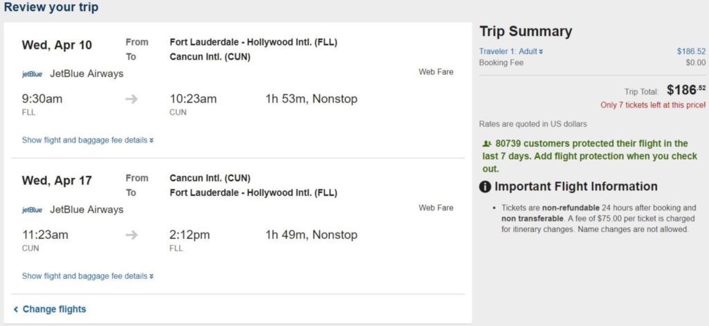 Vacation hotspot Cancun is seeing sale fares from across the South, for travel from February into April. American Airlines will fly direct from Dallas and Miami from $152 Basic Economy (including bag) and $182 for Main Economy; JetBlue books out of Ft. Lauderdale for as little as $186 Main Economy direct.