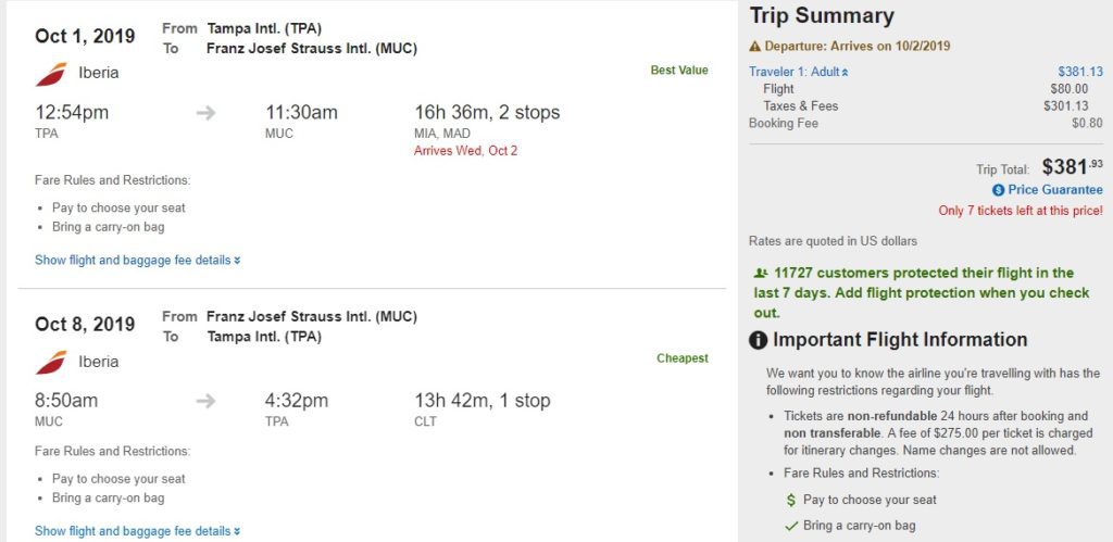 These are basic economy prices, which includes carry-on meals. Seat selection is available for a price according to Orbitz, which is probably a better deal than buying up to main economy for probably $120-$160 total. These are available from OTAs, but you’ll have to call in to the airlines if you want to book directly. If you want a chance to visit Germany these are great prices so book your trip today.