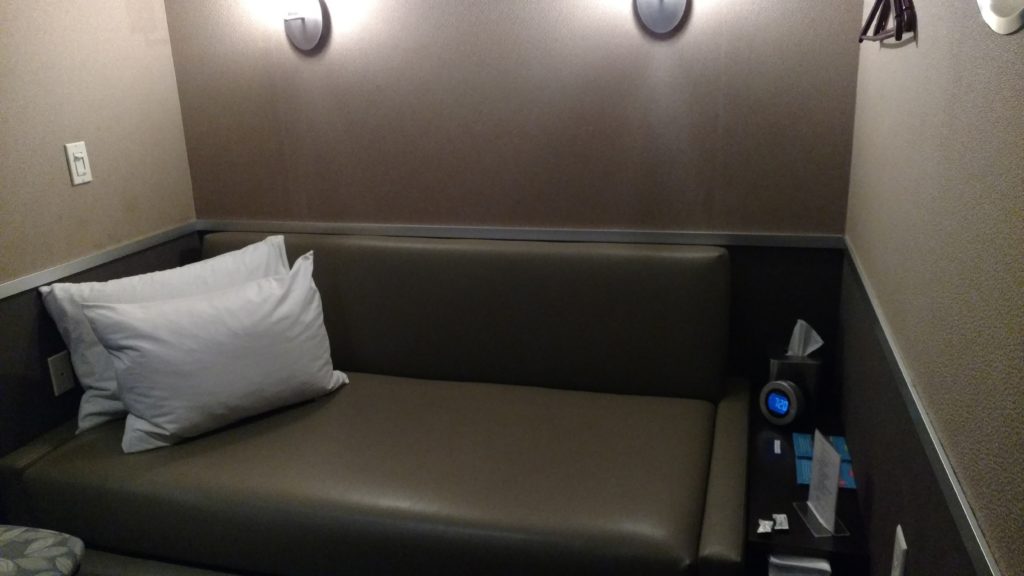 When I showed up, there was a room available immediately. “Great! I’ll take one, I’ll only be here for about 45 minutes.” The helpful attendant explained that I get the first hour free with my Priority Pass Select membership, and that any time after that would be charged to my card, at a rate of $28/hour. The normal rate is $42/hour, but if I’m understanding correctly, Priority Pass members get the discounted $28 rate as a privilege of membership.