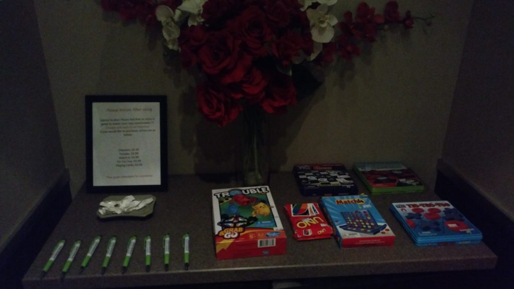 I should note that the Minute Suites aren’t just for sleeping. The DirecTV is a great option if you want to catch up on your shows, or need a little entertainment. There’s also a selection of boardgames for anyone interested, though they weren’t all the interesting.