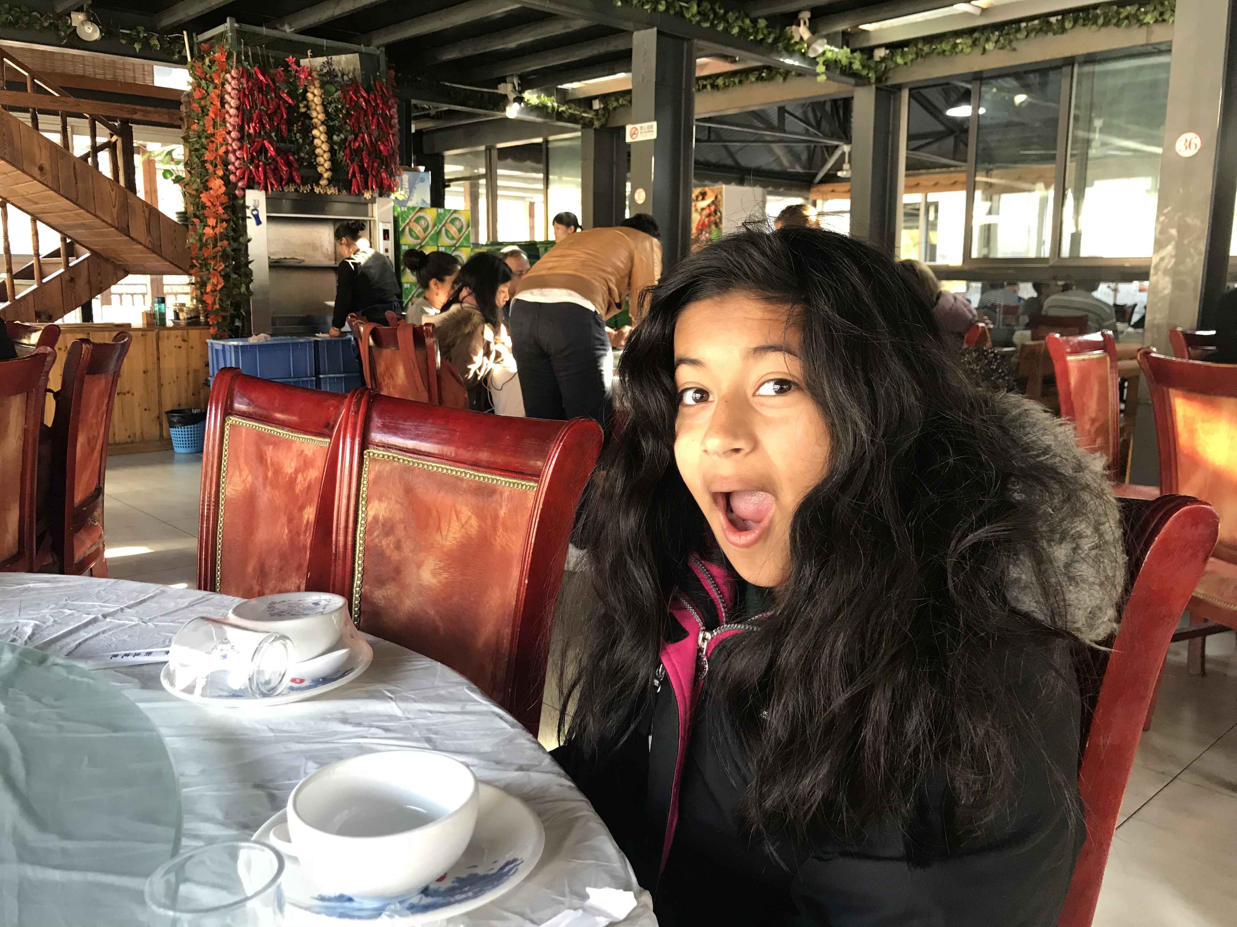 We headed down from the wall with about an hour left before we had to meet our group for lunch. We wandered around near the base of the wall for a bit, bought a snack, and then headed down to the restaurant a little before the 1:40 scheduled meal time.