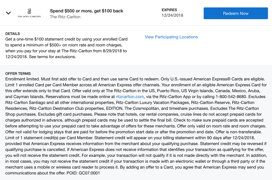 There’s a new Amex Offer and this time, you could get extra savings at the Ritz-Carlton.