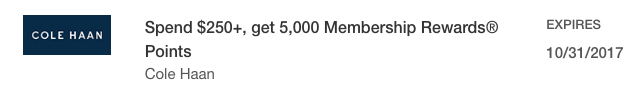Several new Amex offers appeared this week, including 20% savings at HP and Cole Haan. Check your accounts and see if you are targeted. Before you make any purchases, be sure to double check the terms of the offers. When you make purchases online, be sure to go through online shopping portals to earn additional points or miles.