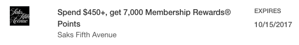 Several new Amex offers appeared recently, including highly targeted offers at Mr. Porter and Saks 5th Avenue. Check your accounts and see if you are targeted. Before you make any purchases, be sure to double check the terms of the offers. When you make purchases online, be sure to go through online shopping portals to earn additional points or miles.