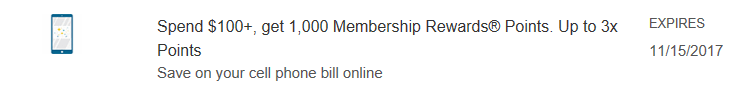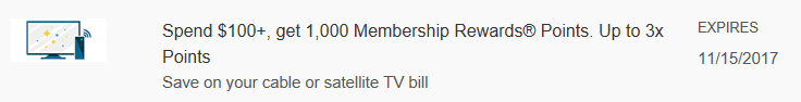 Two new awesome Amex offers showed up this morning – save up to $30 on your cell phone or cable/satellite bill, or earn up to 3,000 Membership Rewards points. Check your accounts and see if you are targeted. Before you make any purchases, be sure to double check the terms of the offers. When you make purchases online, be sure to go through online shopping portals to earn additional points or miles.
