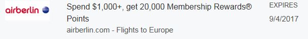 Just yesterday there were new Amex offers for shopping appeared. Today new travel-related Amex offers showed up, including savings for cruises and earn 20,000 Membership Rewards points with airberlin. Check your accounts and see if you are targeted. Before you make any purchases, be sure to double check the terms of the offers. When you make purchases online, be sure to go through online shopping portals to earn additional points or miles.
