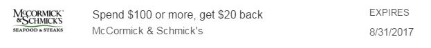 - Valid at McCormick & Schmick’s Seafood & Steaks, McCormick & Schmick’s Harborside, McCormick’s Fish House & Bar, M&S Grill, McCormick & Schmick’s Grille, McCormick & Kuleto’s.