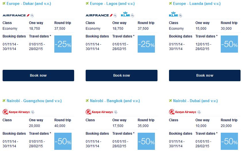 - Accra, Cairo, Cotonou, Luanda to Europe in Economy for 50% off (12,500 miles)