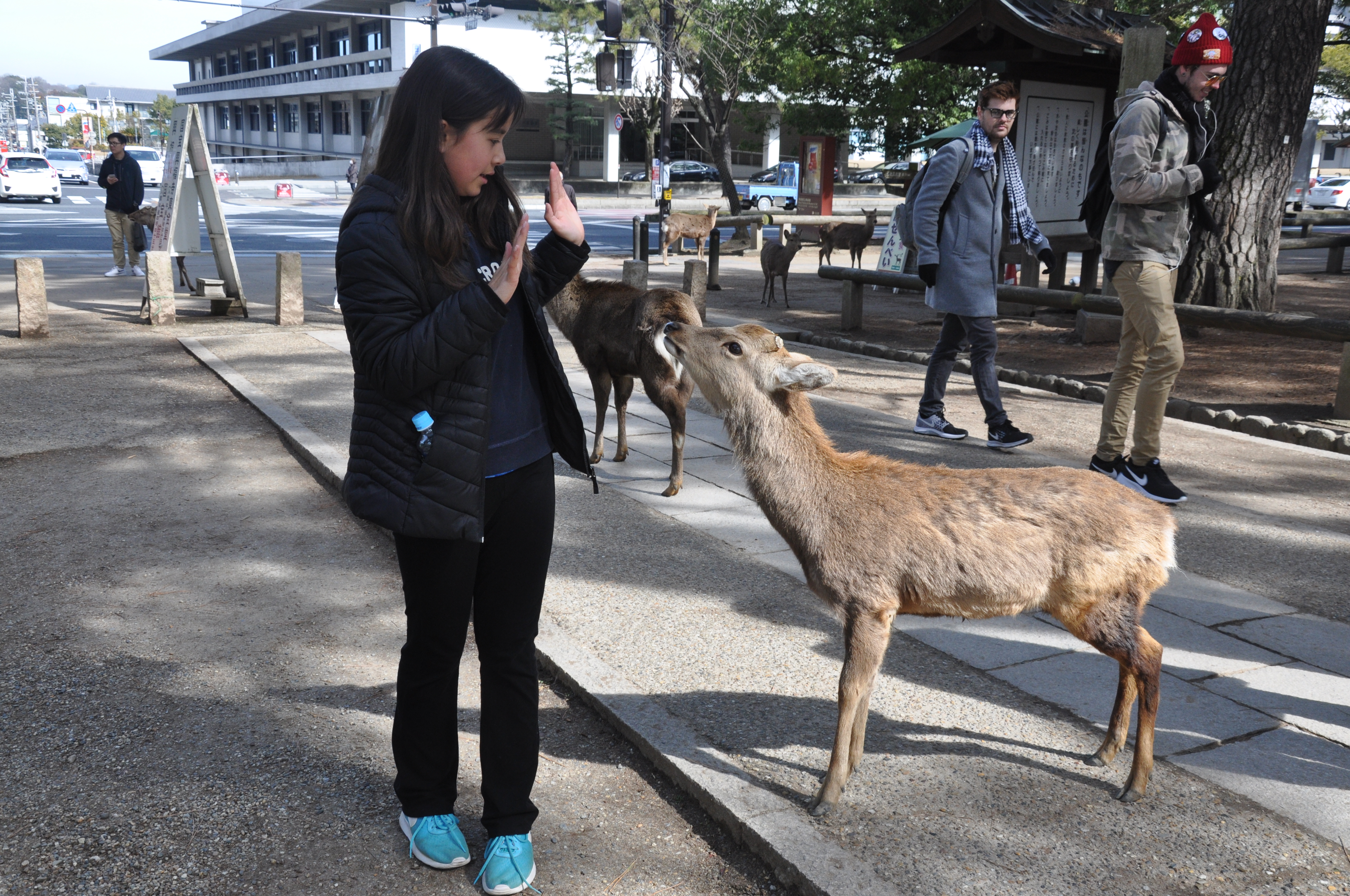 Since we had only three days in Kyoto, we spent the entire time within the city of Kyoto. We waited until we were staying in Osaka to take the day trip to Nara on a sunny day. It worked out perfectly. We spent about half a day walking through Nara park. The deer crackers were gone so fast that my daughter kept buying more. It was definitely a day trip worth doing, especially with kids.