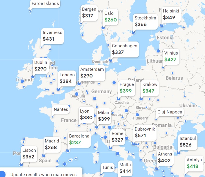 When you see flights to Europe (and Central America and the Caribbean) on Google Flights, most of those fares are basic economy. If you’re unfamiliar with the term, basic economy fares are “bare bones” options; they usually include only an unassigned seat (typically the least desirable), a carry-on bag, and an economy class meal. Some airlines provide even less: Norwegian and Icelandair charge for meals.
