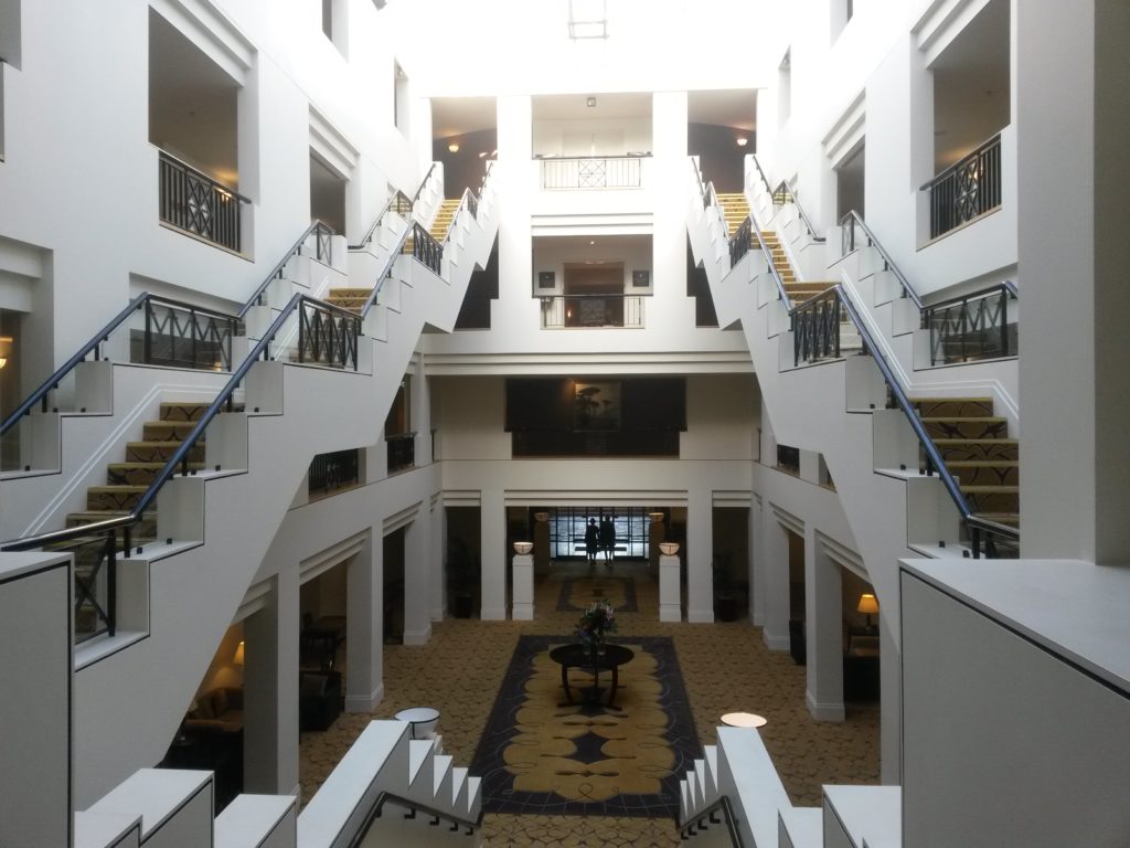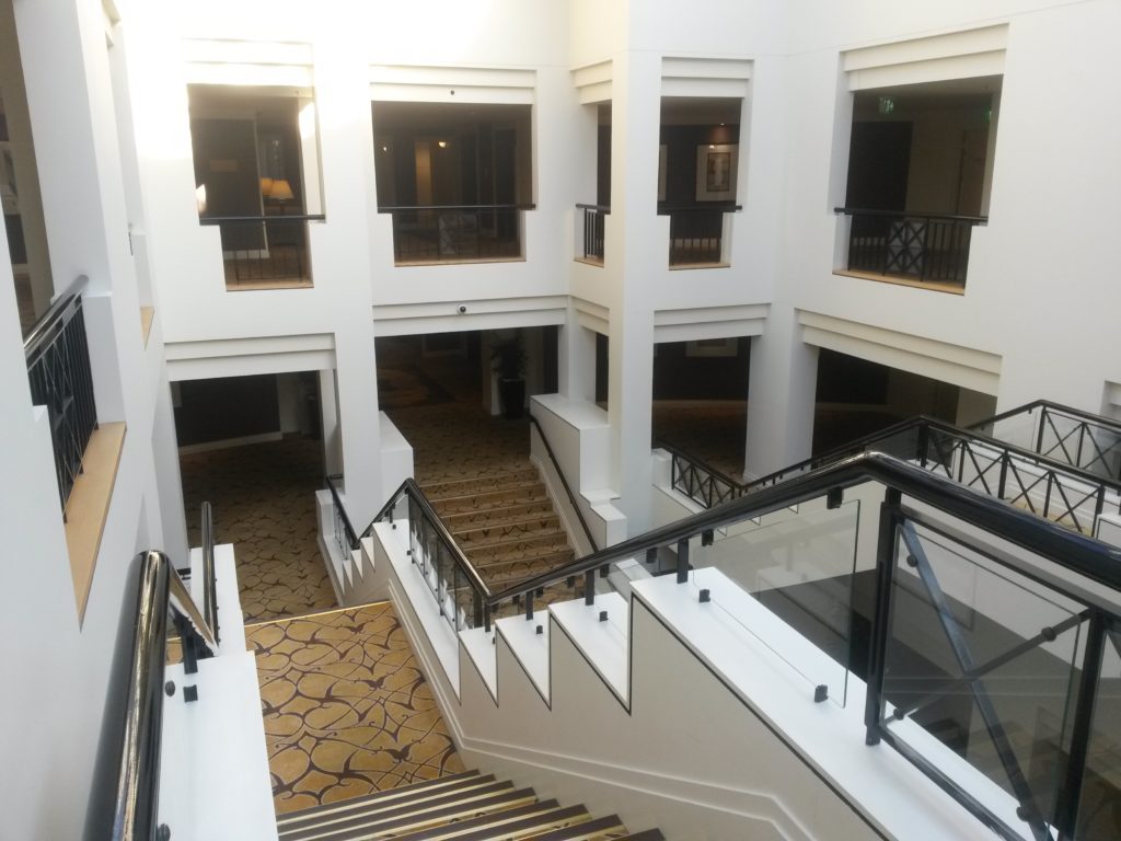 Finally, I entered the rear section of the hotel with some interesting staircases. I loved the design of the space.
