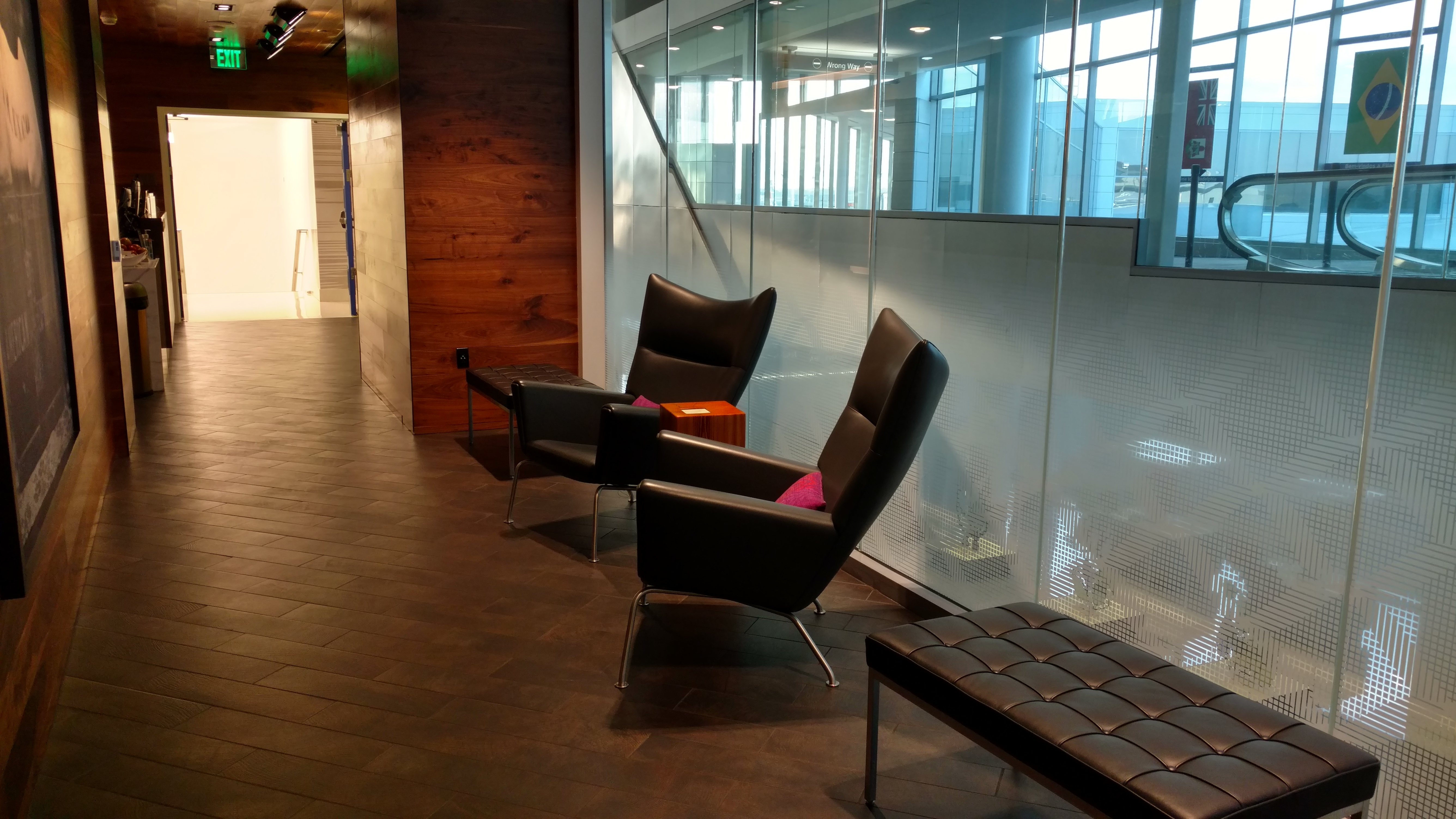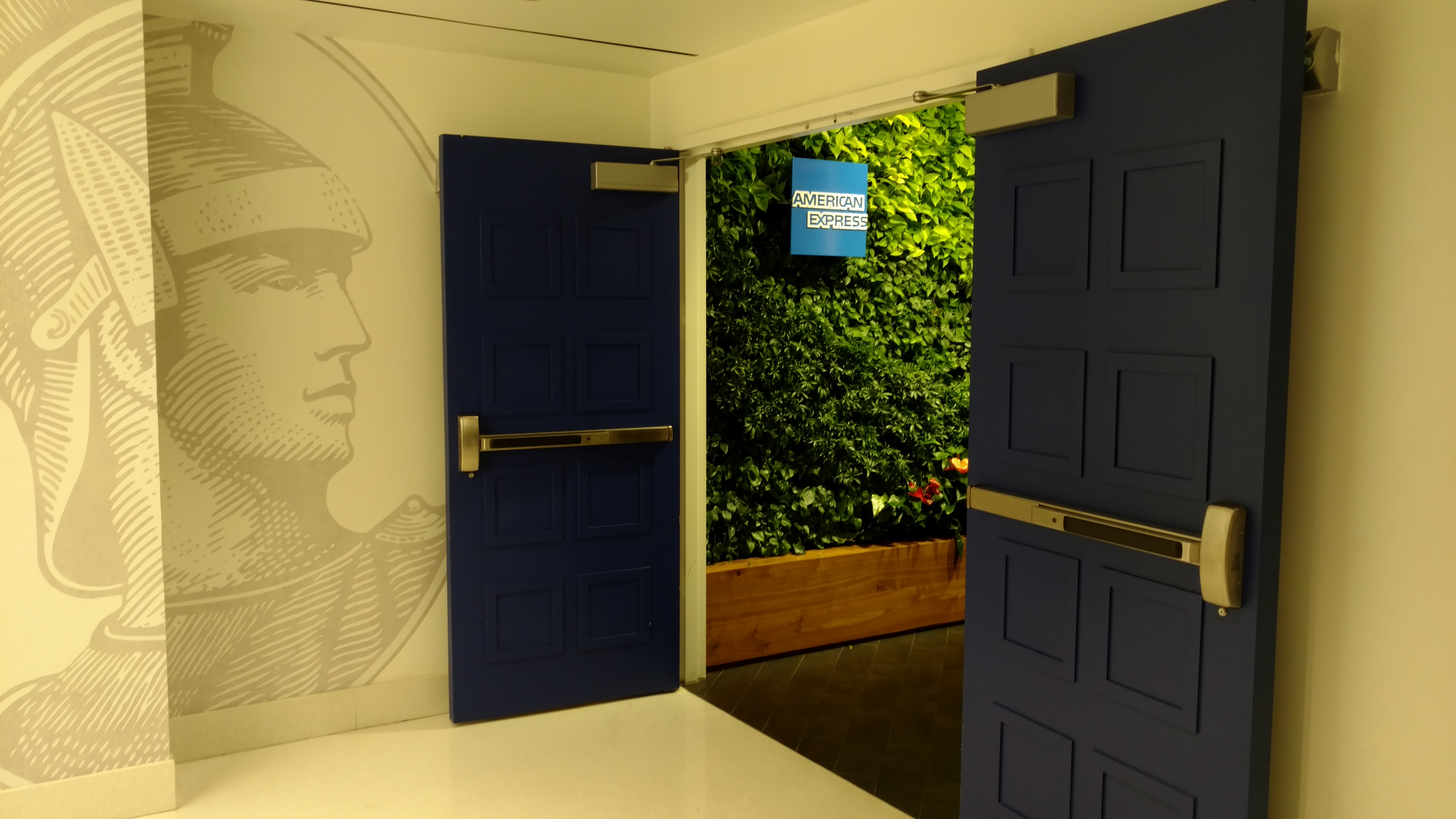 Blue doors, green walls. That’s how you know your’e at the Centurion Lounge! Well, the giant centurion profile on the wall helps too…