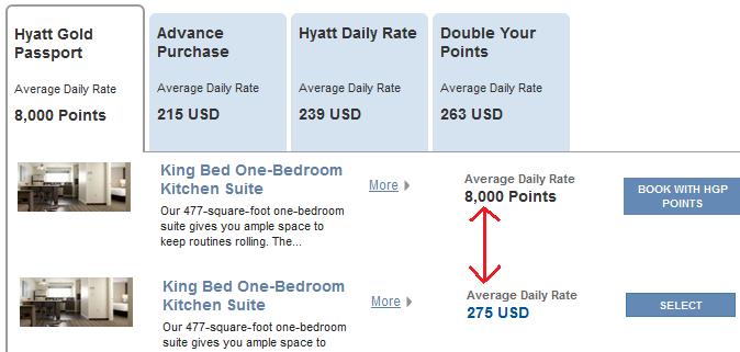 The Hyatt House San Juan is a Category 2 Hyatt, which means that a night costs 8,000 points. Also, I noticed when booking that (almost) ALL of the rooms were 8,000 points, including a one-bedroom kitchen suite. Compare the 8000 points to the average daily rate for the room we got at $275 / night, you’ll find that is a redemption of about 3.4 cents per point.