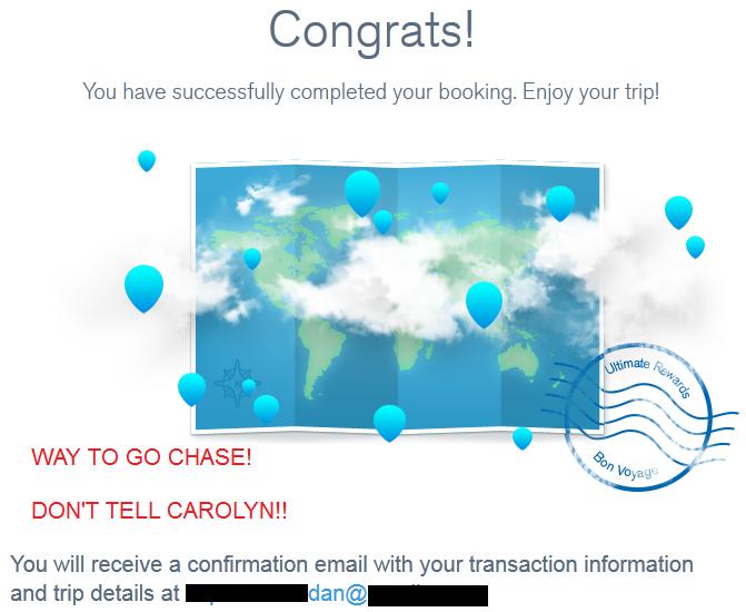 Chase apparently didn’t get the memo on the fact that it was supposed to be a SURPRISE!, so I had to monitor her email and delete it when it came in :-). Luckily she gets so much bank and credit card email that she generally just ignores it all 😀