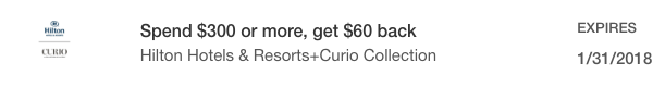 - Offer valid January 1, 2018, through April 30, 2018 (“Promotion Period”) at any hotel or resort within the Hilton Portfolio excluding Hampton by Hilton Hotels in Mainland China.