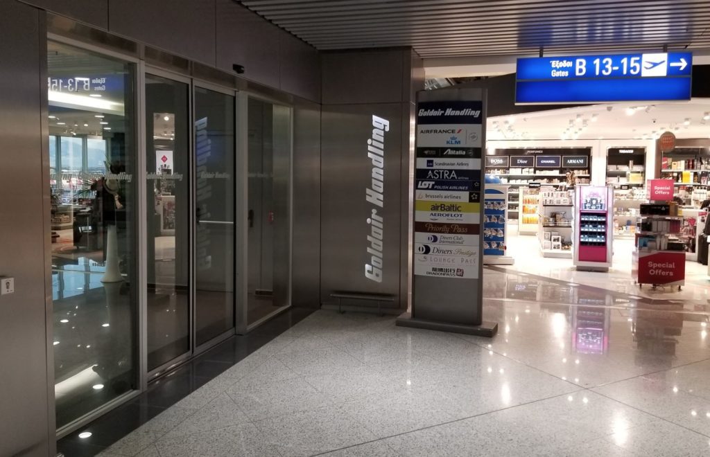 The Priority Pass Athens Goldair lounge is located next to the Aegean Airlines lounge, just outside of Gate B13