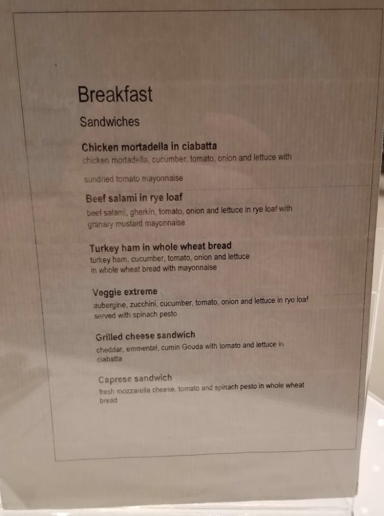 The Qatar Airways Al Mourjan Business Class lounge in Doha has a sit-down restaurant, which was serving breakfast during our stay.