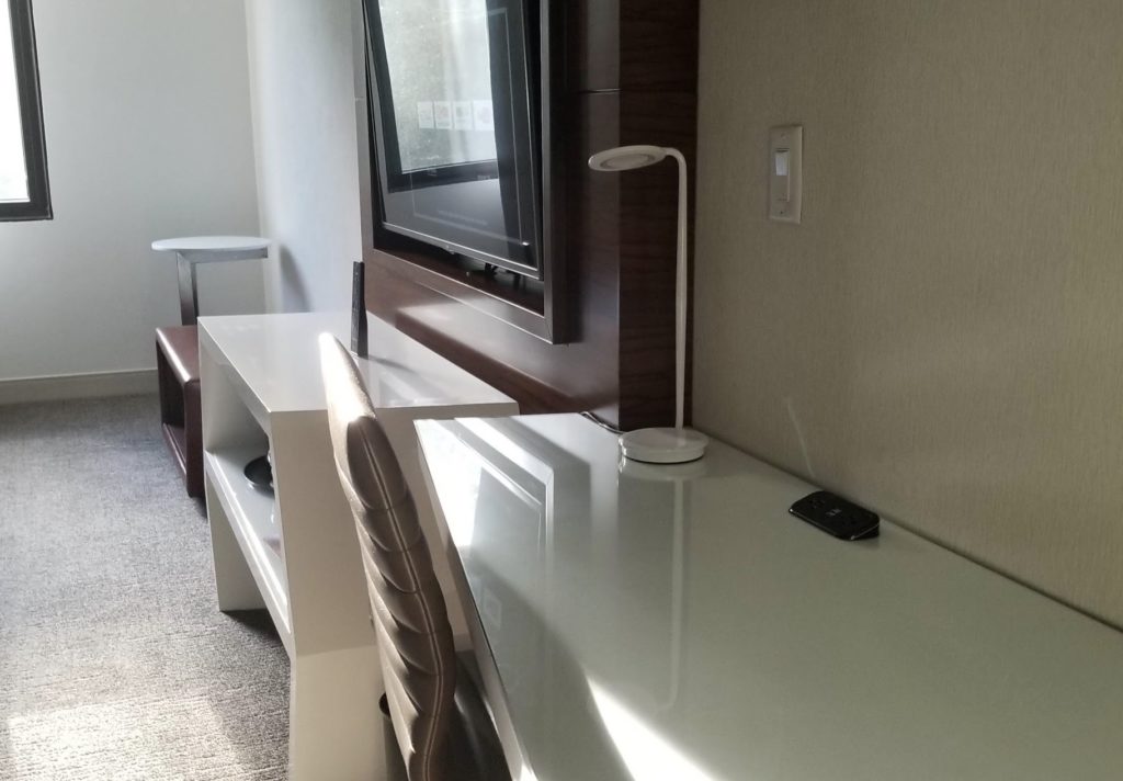 The only 2 complaints I had about the Raleigh Marriott Crabtree Valley room was that the pillows were pretty wimpy (which unfortunately is pretty standard in hotel rooms), and that the room was very dark. This wasn’t a problem during the day, as there was a large window in my corner room. But once the sun went down, even with every light in the room on, it felt very dark and it was hard to get sufficient light.
