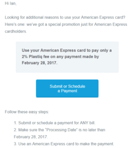 plastiq-q1_2017-amex-promo by Ian Snyder | Jan 12, 2017 | 0 comments Newsletter SignupJoin the PWaC newsletter filled with credit card and travel tips Join Now! You have Successfully Subscribed! Submit a Comment Cancel replyYour email address will not be published. Required fields are marked *Comment * Name * Email * Website Δ