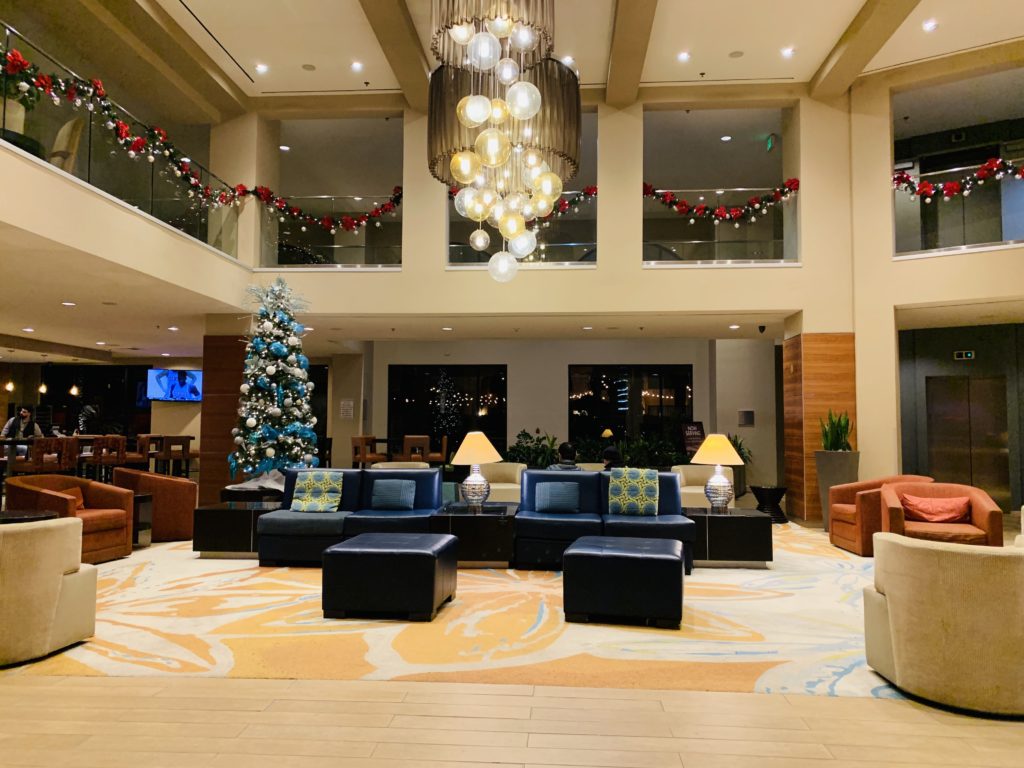 Downstairs, there was a bar and restaurant – both were roomy and I’m sure on a busy day or evening that those areas would be packed with guests. We had no intention in eating within the property since we made plans to eat elsewhere for breakfast. There was a pool and jacuzzi right outside, but we didn’t get to use it at all. It wasn’t that kind of visit.