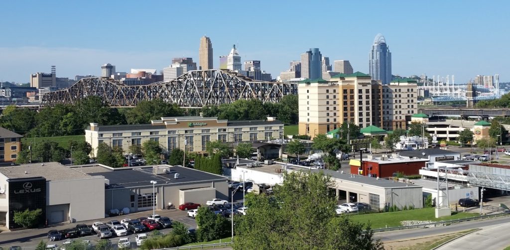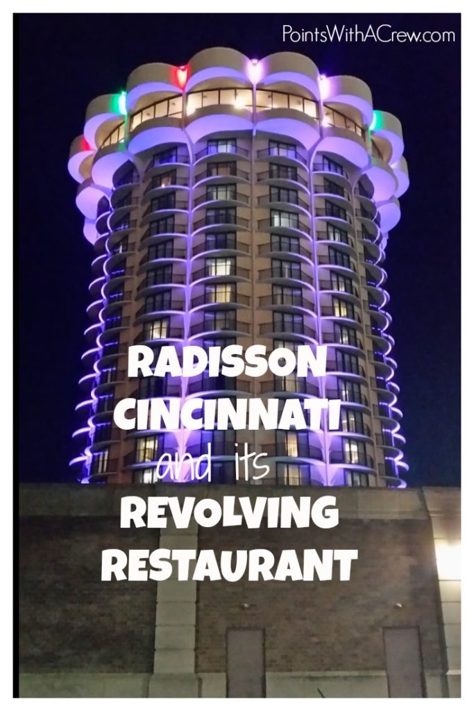 As part of the kerfluffle from US Bank removing the bonus award night on their Club Carlson credit card, US Bank awarded several free night certificates to anyone that was a cardholder. Â We ended up with 3 somehow though the first one expired August 31st. Â Since the stay had to be completed by August 31st and with the date upcoming, we decided to do a staycation and stay one night at the Radisson Cincinnati. Â It’s across the river in Covington Kentucky and very visible as you cross the river on I-71/75. Â In the 20 years that we have lived there, I’ve probably seen it hundreds of times and always wanted to try out the revolving restaurant at the top of the hotel