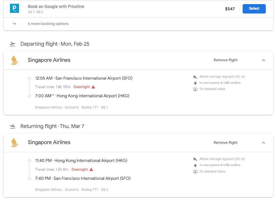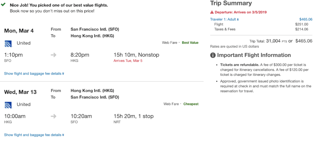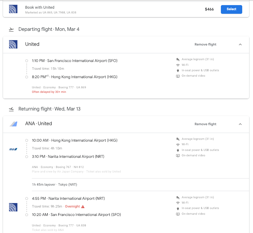 Here’s a deal alert to Hong Kong from San Francisco. From $466, San Francisco to Hong Kong, there are deals with United, and with Singapore Airlines for slightly more. We have two different options for you to choose from.