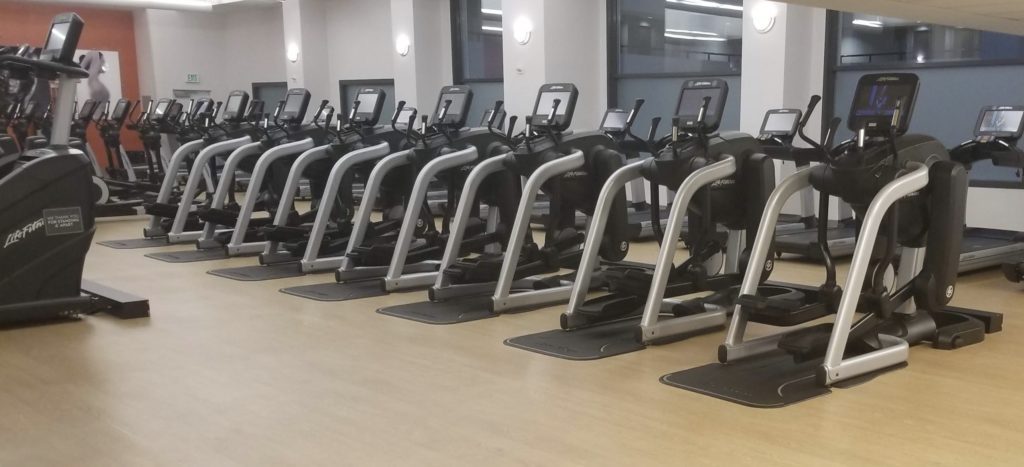 And then up some stairs there were several rows of cardio equipment including treadmills, bikes and ellipticals.