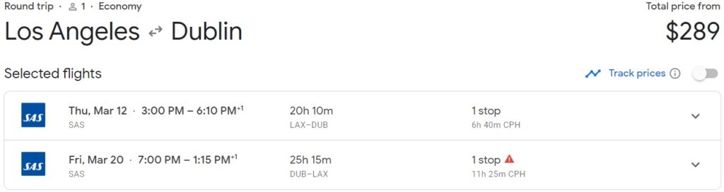Search SAS’ site for options, including smaller cities, and you’ll see a huge grid for whichever US city they fly from (New York, Chicago, Los Angeles, San Francisco, Boston, Washington D.C., and Miami).