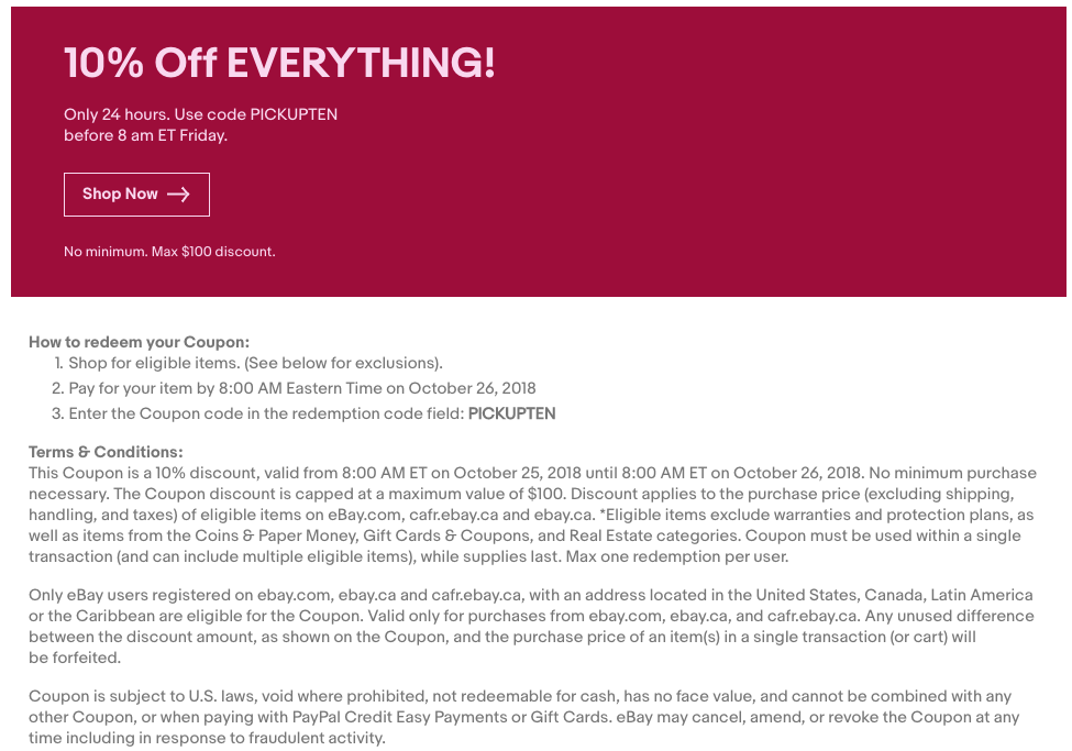 There’s an eBay special offer right now. Here’s an eBay 10% off coupon (affiliate link), and you could get up to $100 maximum discount.