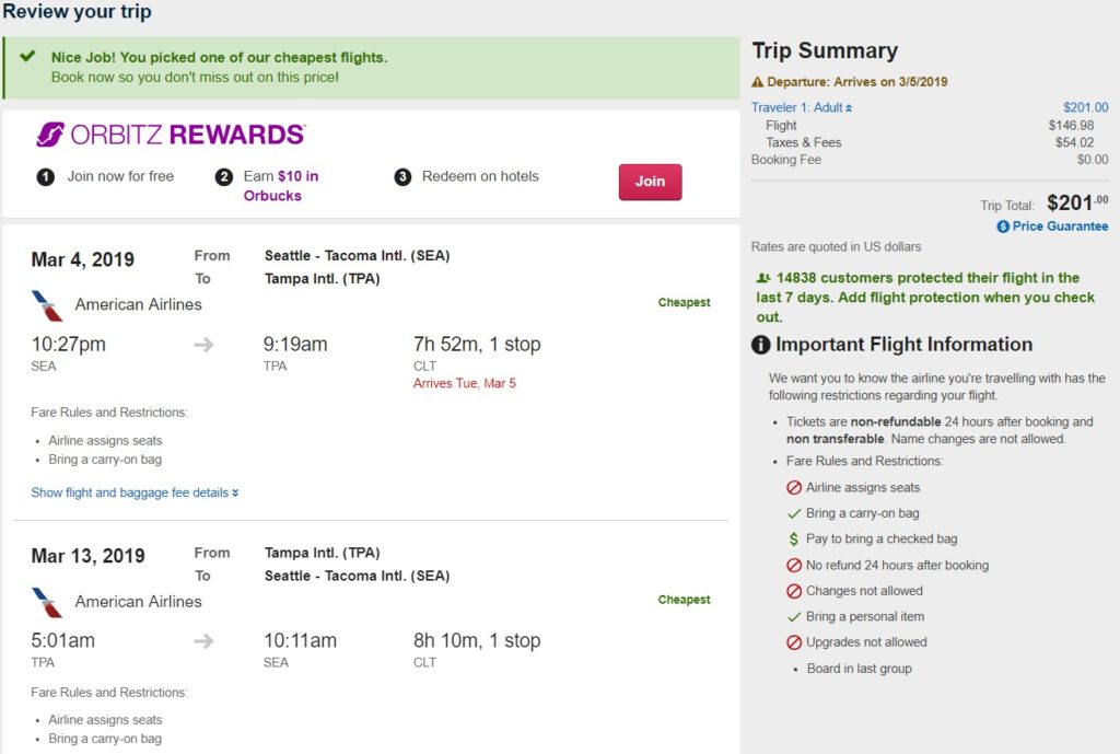 All prices are basic economy, and include a carry-on as well as a personal item. Main cabin (seating selection, faster boarding) is available from $60 extra round trip. These are not bad prices to trade cold and wet for sunny and dry so act now.