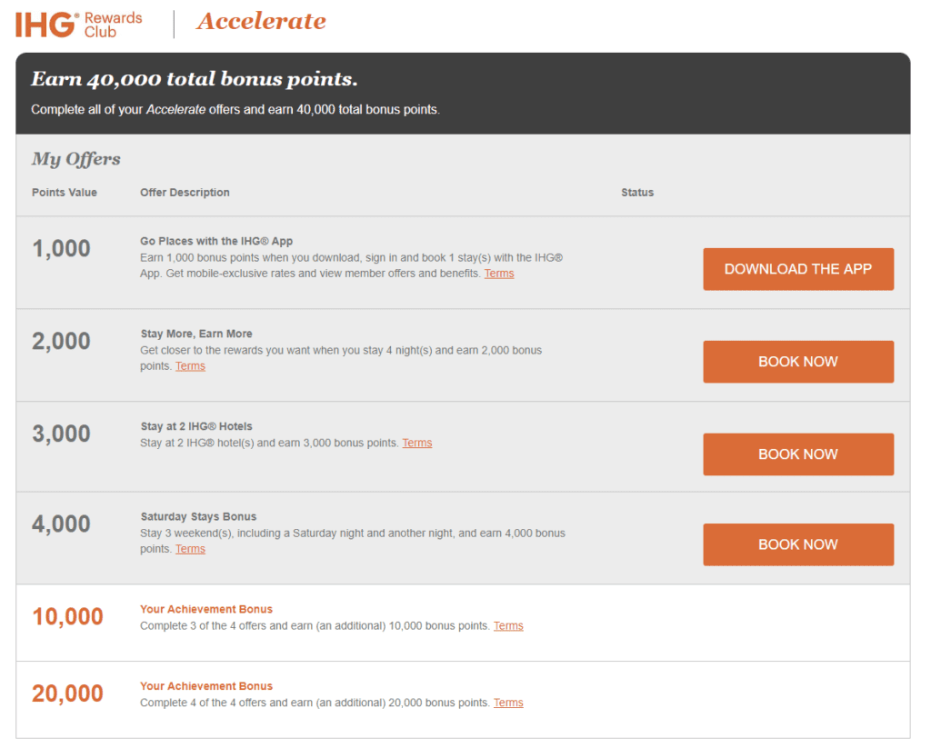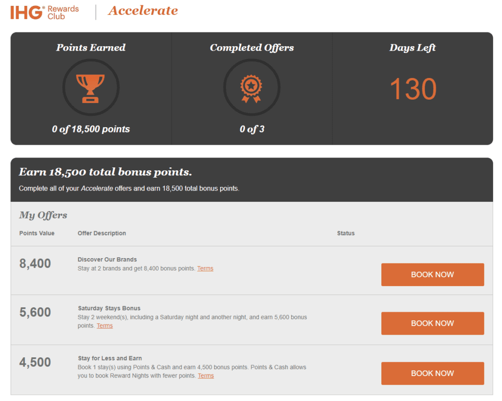 You’ll have to sign in to activate the promotion, click here to sign up for your Accelerate Offers. You have until December 31st to complete your stays, and you must register for the promotion by October 18th. Feel free to scan through the full terms and conditions for more information. If you’ve already got IHG travel coming up, the Accelerate promotion can be a welcome boost to your points balance!
