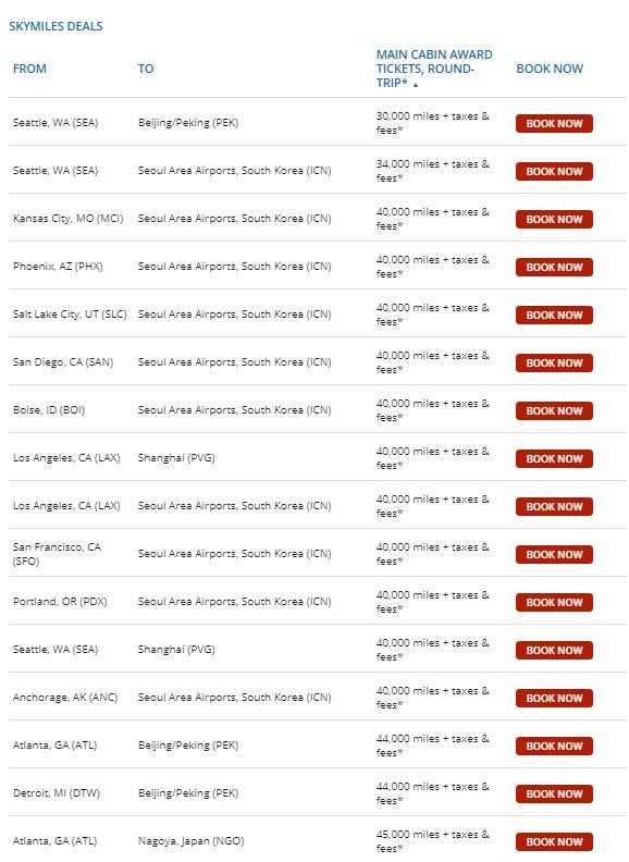 Delta is running another “SkyMiles Flash Deal” promotion to destinations throughout Asia. You will need to jump on these deals soon as they generally end pretty quickly! We are seeing round-trip prices as low as 30k Delta SkyMiles. As is typical with these Skymiles Deals, the travel periods are very short. However, these deals are well worth a look if you are flexible and have SkyMiles to spare!