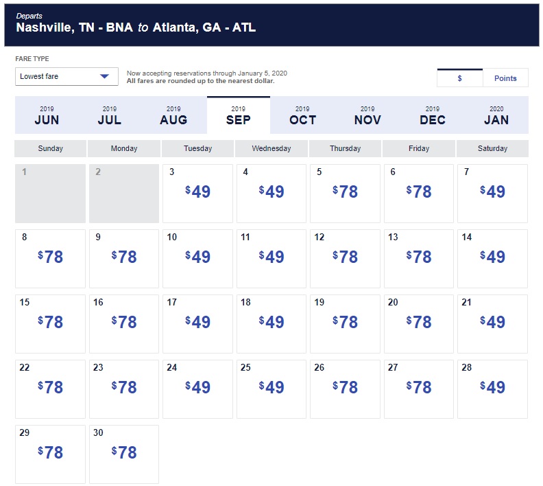 While not every route is available, most mainland cities that Southwest serves has at least one deal. I saw mainland because only inter-island flights Hawaiian flights are included, not flights to/from the mainland. Past sales have those flights as low as $29, though this time they are $49. International flights as well as domestic flights (including non-stops) show deals, and the prices can be very good, especially considering Southwest’s “Bags Fly Free” policy. This sale comes along at a perfect time to help you earn extra Rapid Rewards miles with your Chase Southwest card. Make sure to check the calendar for prices, as the actual fares available are often lower than those advertised.