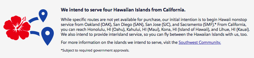 Southwest also announced they intend to provide interisland service, which is interesting as interisland service is currently dominated by Hawaiian Airlines.