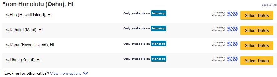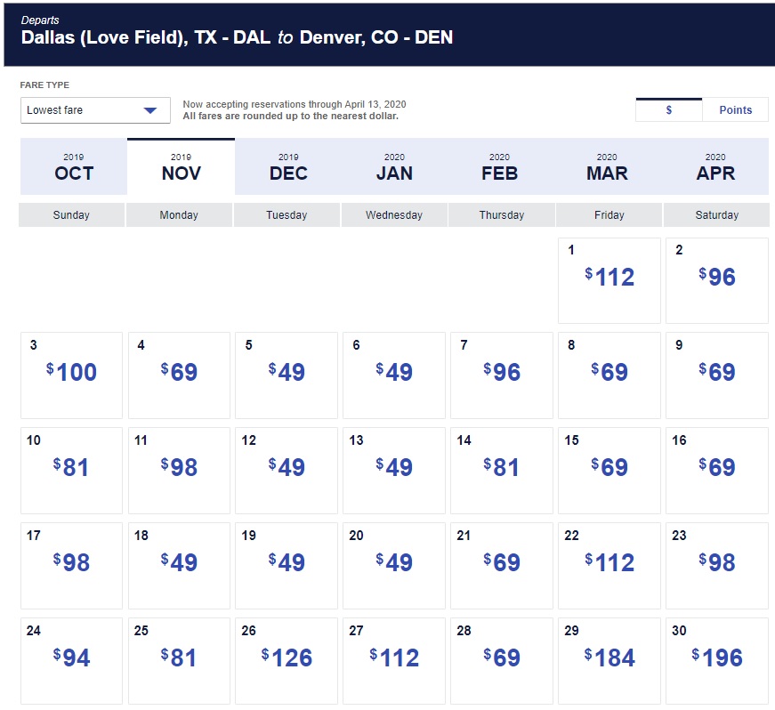 As usual, there are deals below the advertised price, and potentially below the “sale page” price as well. Like between Dallas and Denver advertised at $98 but available for half price. Perfect for escaping the cold or taking a ski vacation, depending on where you live.