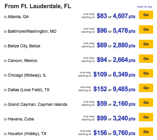 As you can see, if you’re in the Ft. Lauderdale area, you can fly to Cancun for only 2,664 points each way! That’s a steal!