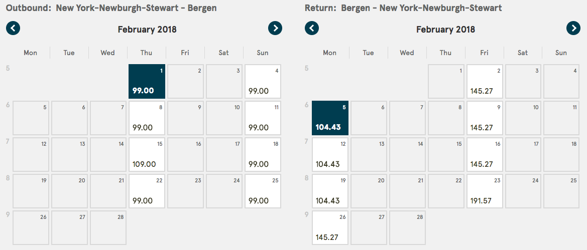 As you can see, there are a bunch of routes from secondary US airports (SWF for New York City, PVD for Boston) to Europe. They also fly to Bergen, Norway (BGO), not shown on this map. Here are some examples I found quickly through Norwegian’s website: