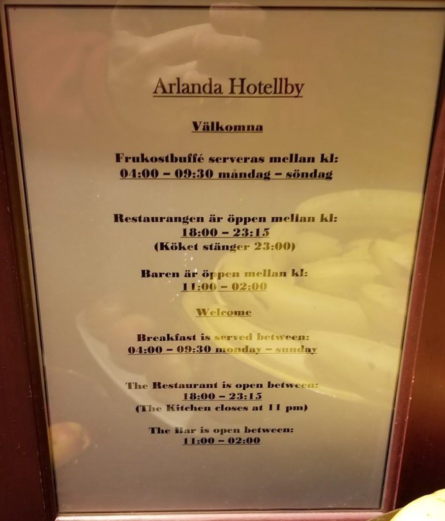 Of course the most important amenity of an airport hotel is the airport shuttle. The Best Western Arlanda Hotellby is right next to another Best Western (Best Western Plus Park Airport hotel), and the 2 Best Western hotels share an airport shuttle. The Best Western Arlanda Hotellby airport shuttle runs every 30 minutes at the top and bottom of the hour. When you check-in, just tell them what time you would like to take the shuttle. Though as you can see, it’s a large bus, so I can’t imagine there would ever be an overcrowding problem
