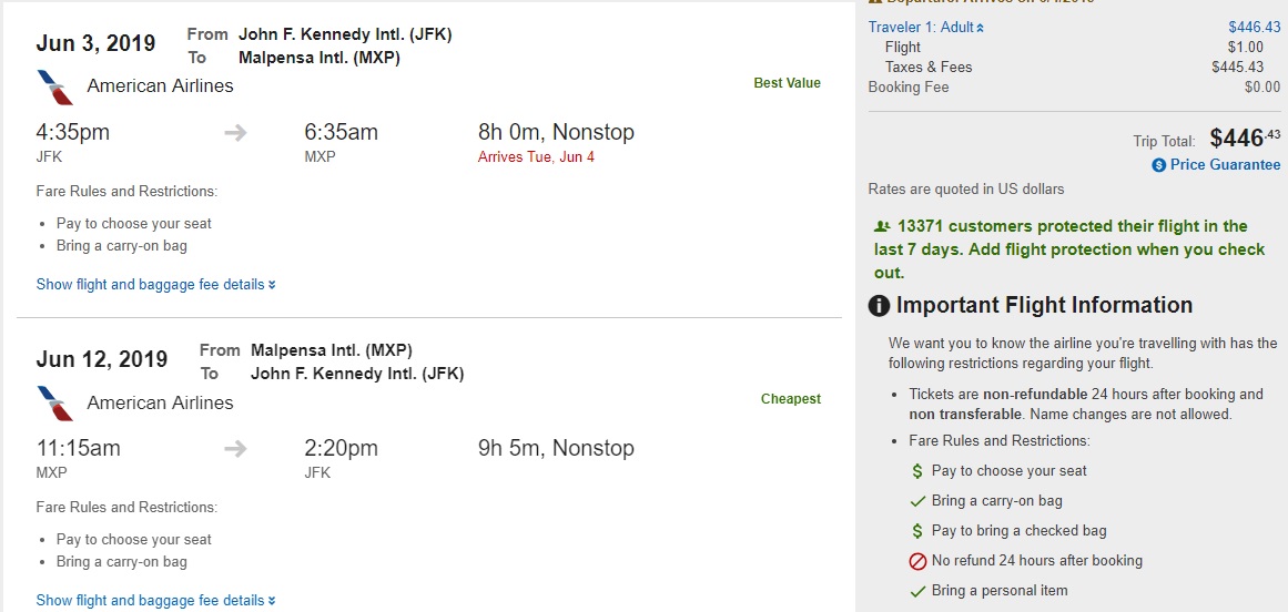 - Follow link for sample dates or search your favorite OTA / Google Flights for departure and destination